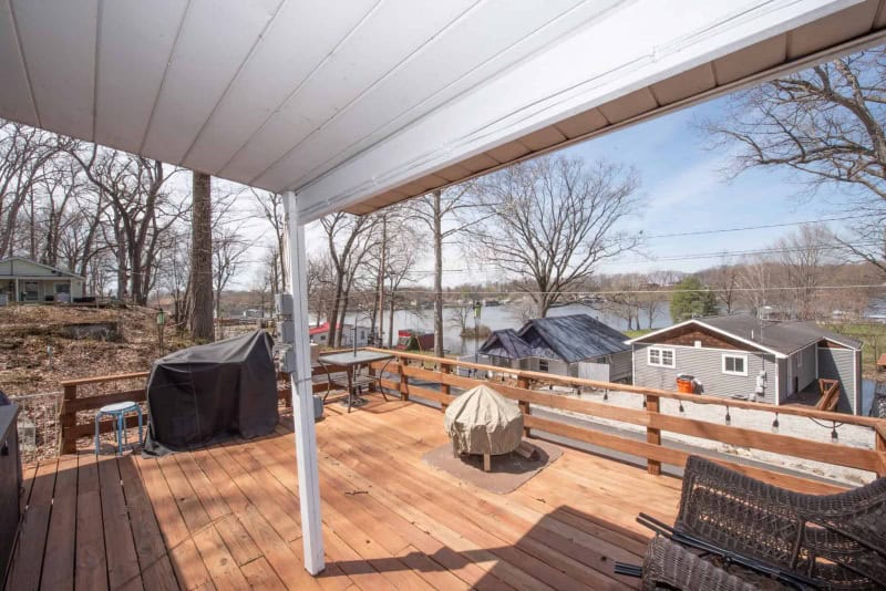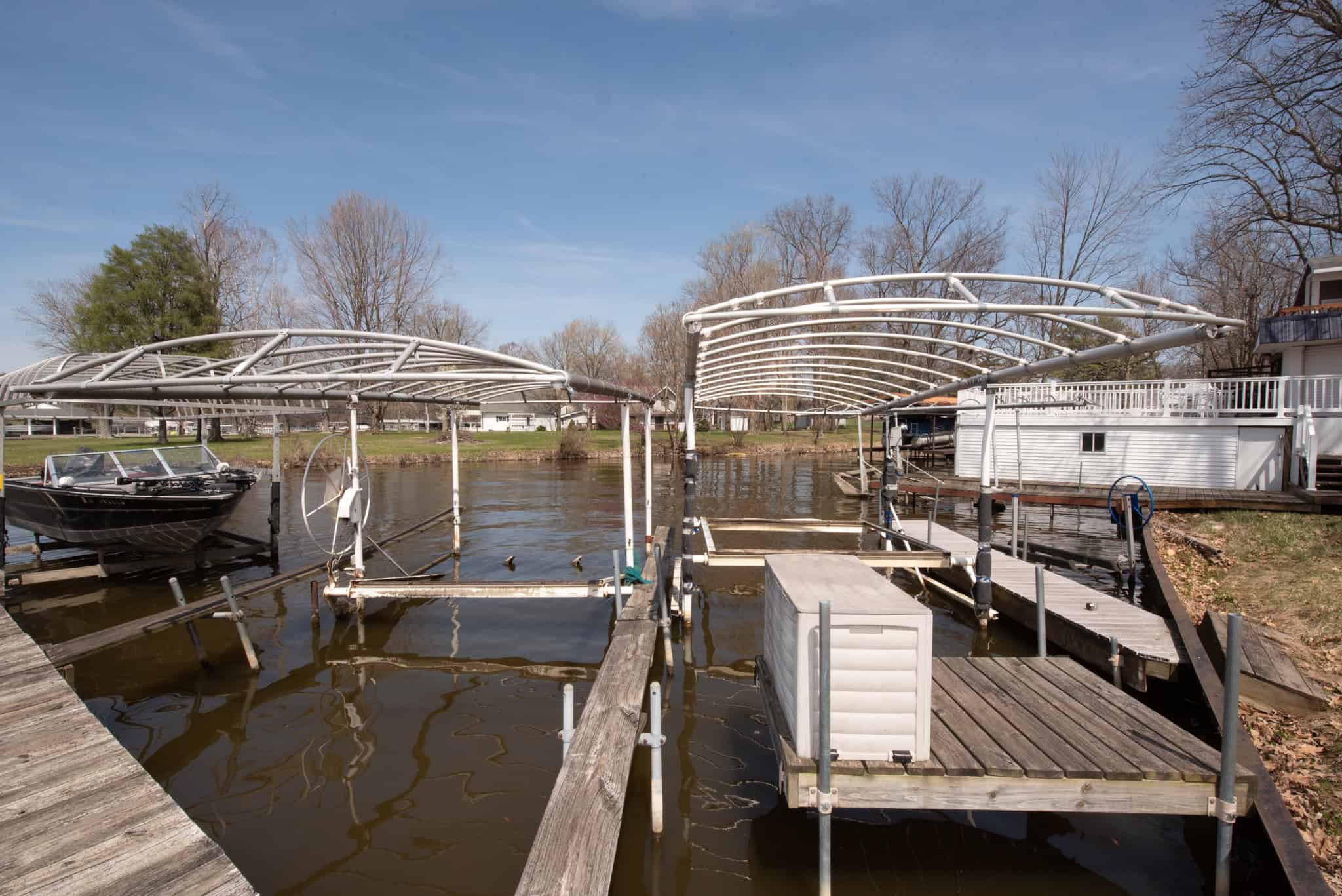 LOCATION, LOCATION, LOCATION! On Lake Freeman and in a desirable golf cart community. Maintenance free year round home, Airbnb opportunity, or summer get away. Partially wooded large lot with plenty of parking and ample space for an RV. The large 24×36 pole barn with a 10ft door can accommodate all your boating and storage needs. Shared easement to the water frontage with your own boat lift and jet ski lift. This property is perfect for entertaining with its large deck and great main lake views. Updated interior with an open floor plan, butcher block countertops, all appliances and wash/dryer included, tile shower, and tankless water heater. Located less than a few miles from Sportsman, Madam Carroll, live music, and downtown Monticello.